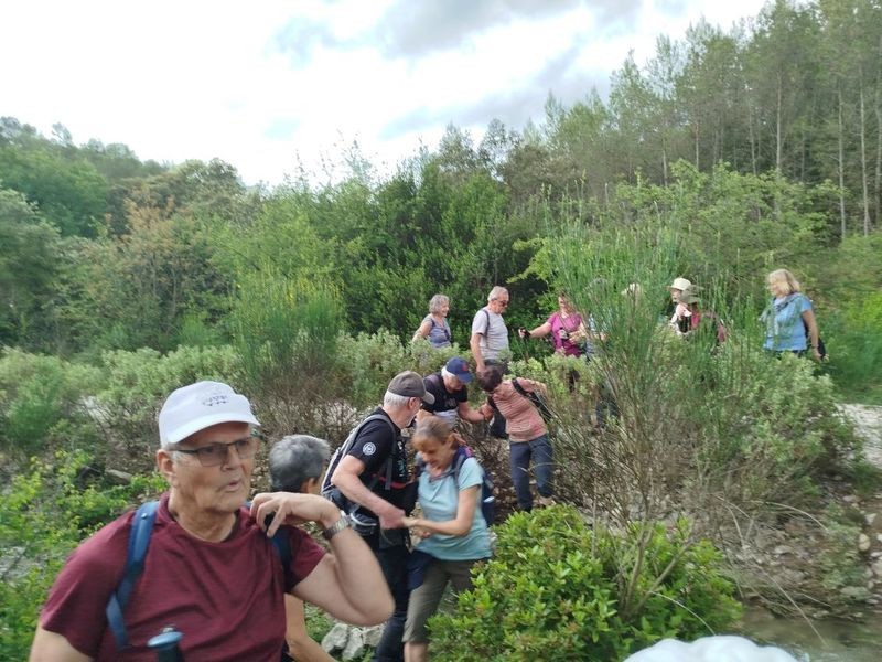 CRESPIAN le 13 Mai 2025, 12 km, 19 participants, Rando inoubliable, soleil chaud, puis nuages, ensuite traversée ruisseau périlleuse, pour finir avec éclairs, tonnerres, grêlons, grosse pluie incessante pendant 1 heure, mais rando "intéressante"